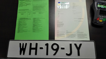 Nun, wir sind jetzt stolze Besitzer eines holländischen Nummernschildes, einer für 14 Tage gültigen Versicherung und einer holländischen Kurzzeit- Zulassung für die gleichen 14 Tage!