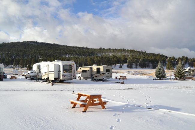 Die Nacht auf dem KOA Campingplatz Albuquerque zum teuren Preis hätten wir uns fast sparen können! Wir schlafen mit 8 Uhr einfach zu lang, um die Annehmlichkeiten der KOAs, in unserem Fall Whirlpool und angeblich überdurchschnittliche Servicehäuser, auch wirklich nutzen zu können. Wir sind aber auch ein bisschen selber schuld. Es ist einfach zu kalt…