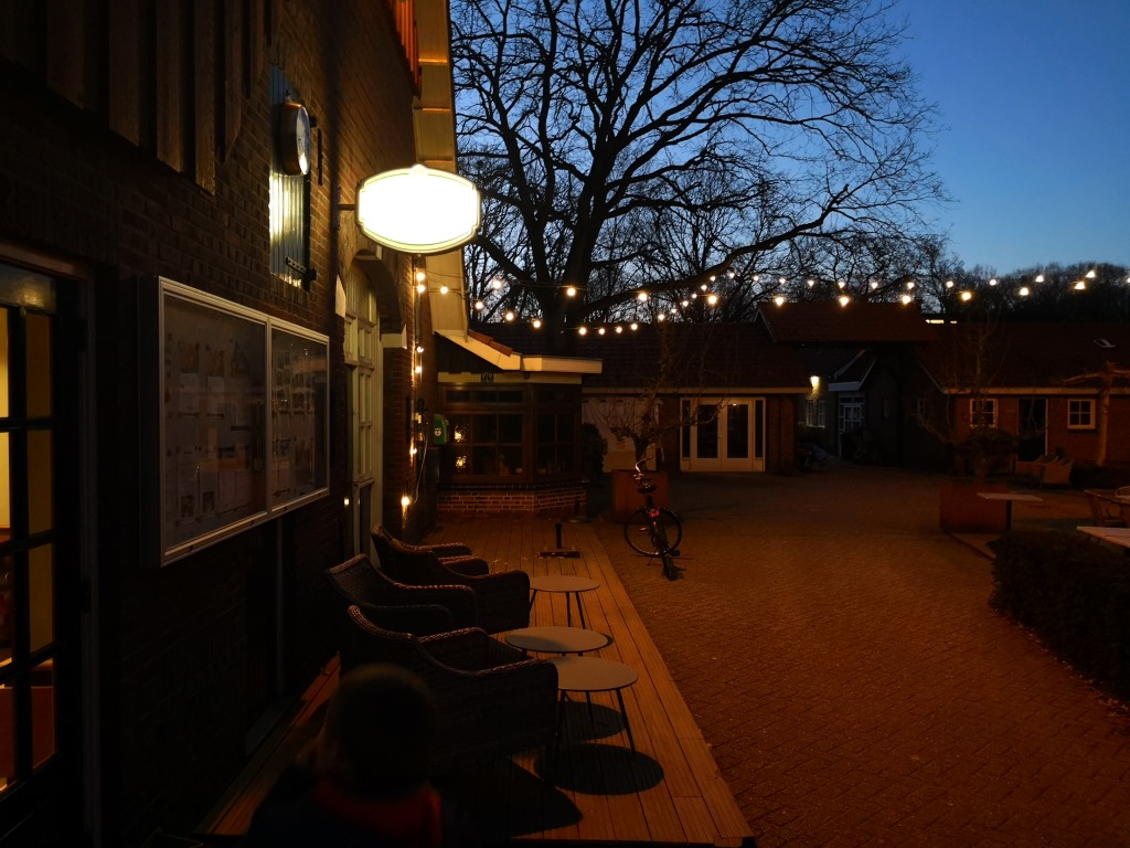 Nicht weniger voll ist übrigens auch der Wohnmobilstellplatz, der hier an den Campingplatz Het Winkel angrenzt. Wir sind nur durch eine Hecke von diesem getrennt. Und obwohl der Wohnmobilstellplatz eine eigene Schranke und Zufahrt unabhängig vom Campingplatz hat, scheint er irgendwie zum Campingplatz dazu zu gehören. Auch dort steppt der Bär! Sogar mehr, als bei uns! Denn auf dem durch die Hecke erkennbaren Parkplatz des Wohnmobilstellplatzes hat sich, während wir einkaufen waren, eine kleine Reisegruppe bestehend aus zwei Wohnmobilen eingefunden! Die sind so gut drauf, dass sie trotz einstelliger Temperaturen draußen sitzen und klönen, wie in einer lauen Sommernacht. Der Alkohol wärmt offensichtlich deutlich von innen und gleich somit fehlende Sommerwäme mehr als locker aus. Und falls doch nicht, vermissen die dennoch erkennbar absolut nichts und haben, trotz einer längeren Anreise (wenn man den Kennzeichen auf den Fahrzeugen glauben darf), noch so viel Energie, dass sie jetzt noch draußen sitzen. Während wir hundemüde ins Bett fallen?