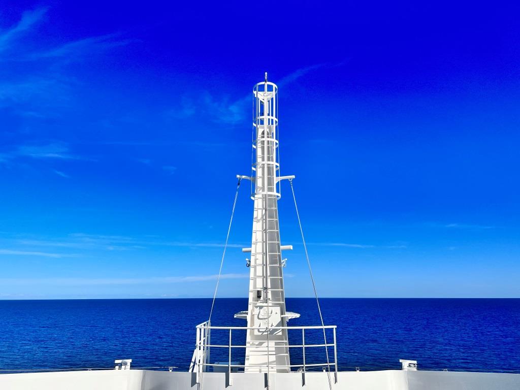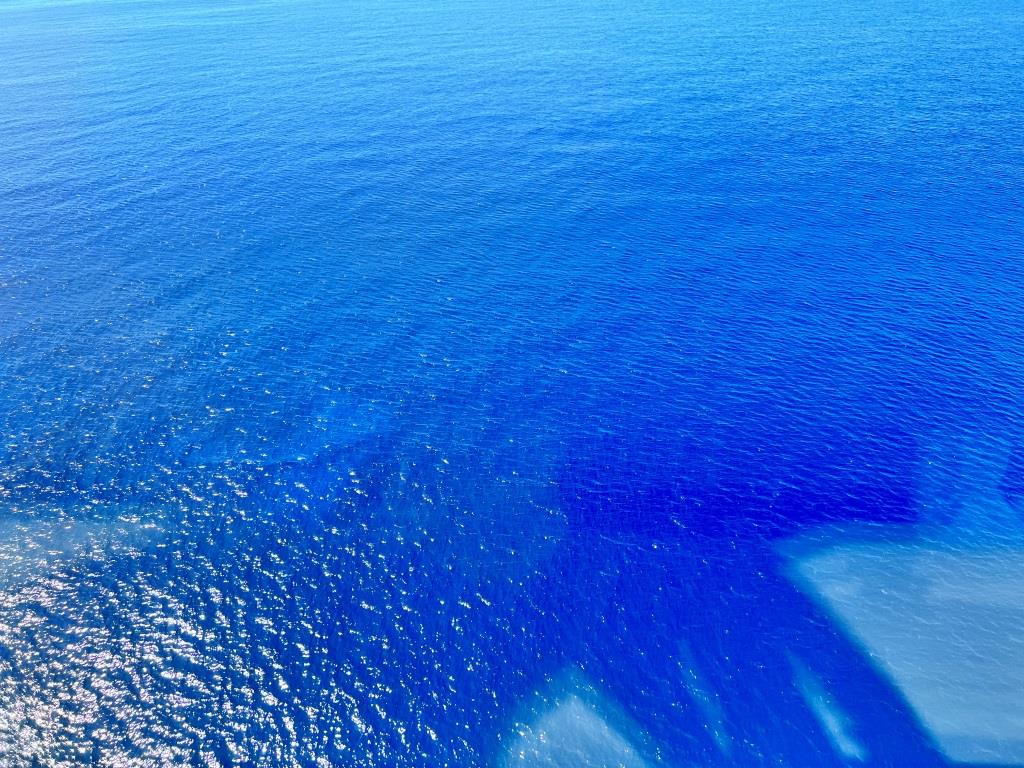 - …noch immer sind wir auf hoher See unterwegs. Die See ruhig, das Wasser klar und blau.