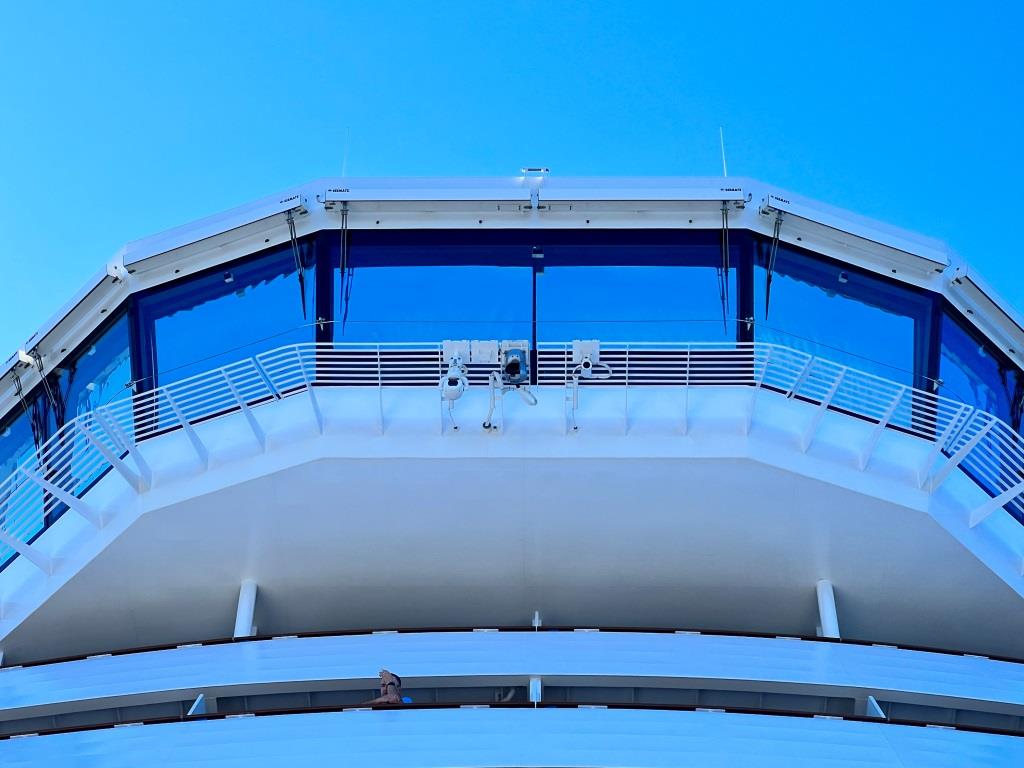 - Ganz vorne auf Deck 8 an der Bugspitze des Schiffes…