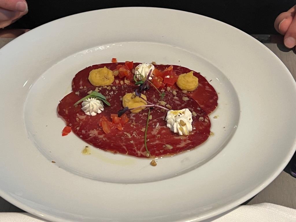 Also Lachstartar und Bresaola als Beispiel. Oder in Chainti Wein geschmorte Kalbsbäckchen als Hauptgericht. DAS klingt doch absolut nach Edelgastronomie ohne Mogelpackung, oder?