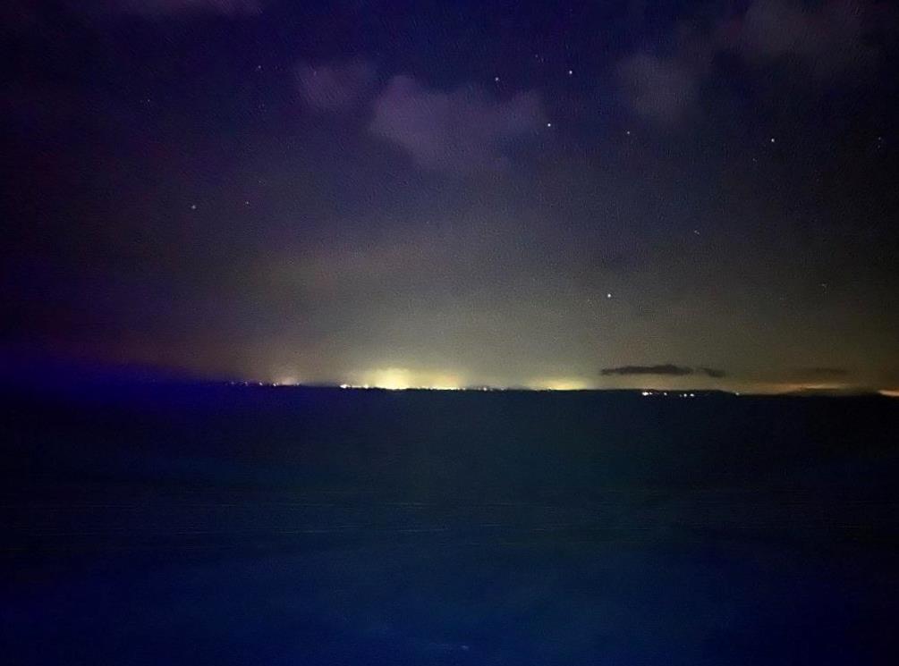 - In der Ferne strahlt Cagliari auf Sardinien und beleuchtet den Nachthimmel! Was auch „strahlt“ ist endlich wieder Handyempfang. 😉