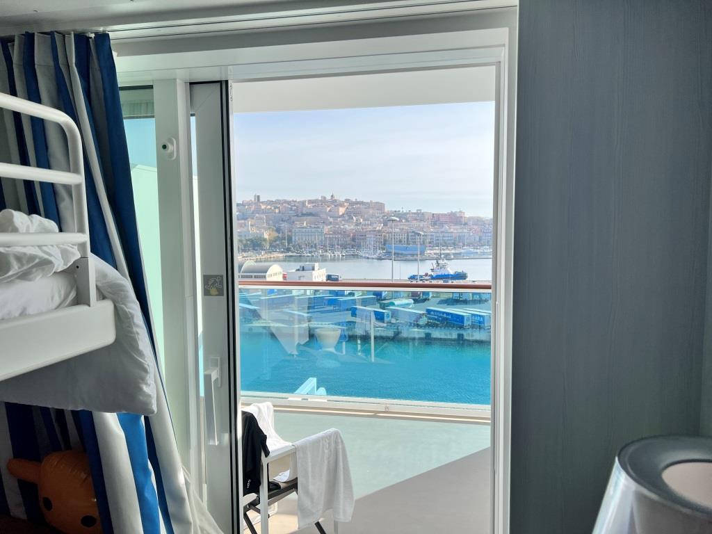 Es folgt das Boarden der Costa Toscana und noch einmal hab ich leicht erhöhten Puls. Überlege mir schon Ausreden, warum meine Chips mit Shrimps Geschmack unverzichtbar für die Mitnahme an Bord sind und so weiter, aber das ist gar nicht nötig. Die Bordkarten werden gescannt, der Mitarbeiter vergleicht (zumindest bei den Erwachsenen, bei den Kindern passiert das nicht) das beim ersten Landgang gemachte Foto und das war´s. Wir sind drin. Mitsamt einem Knabbervorrat, der den Rest der Reise locker reichen sollte. Super! Nur das mit den Getränken bleibt ein Ärgernis! Klar hätte ich während des Landgangs auch ein paar Flaschen Wasser und ein paar Dosen Cola kaufen können. Aber wie das mit Light Cola nunmal so ist, schmeckt diese nur absolut bis kurz vor Gefriergrenze heruntergekühlt! Diesen Kühlschrank, die obligatorische Mini- Bar, haben wir trotz Kategorie „Balkonkabine“ leider nicht in unserem Zimmer. Zähneknirschend muss ich also wieder runter von Deck 10 und in den Bereich der Decks 6, 7 oder 8, um dort eine offene Bar zu finden. Cola gibt es nur glasweise, um also besagte kalte Cola mit Blick von unserem gemütlichen Balkon aus genießen zu können, mit dem vollen Glas auch wieder über die Gänge und an den umherwuselnden Passagieren vorbei zurück zur Kabine. Das ist echt unschön gelöst.