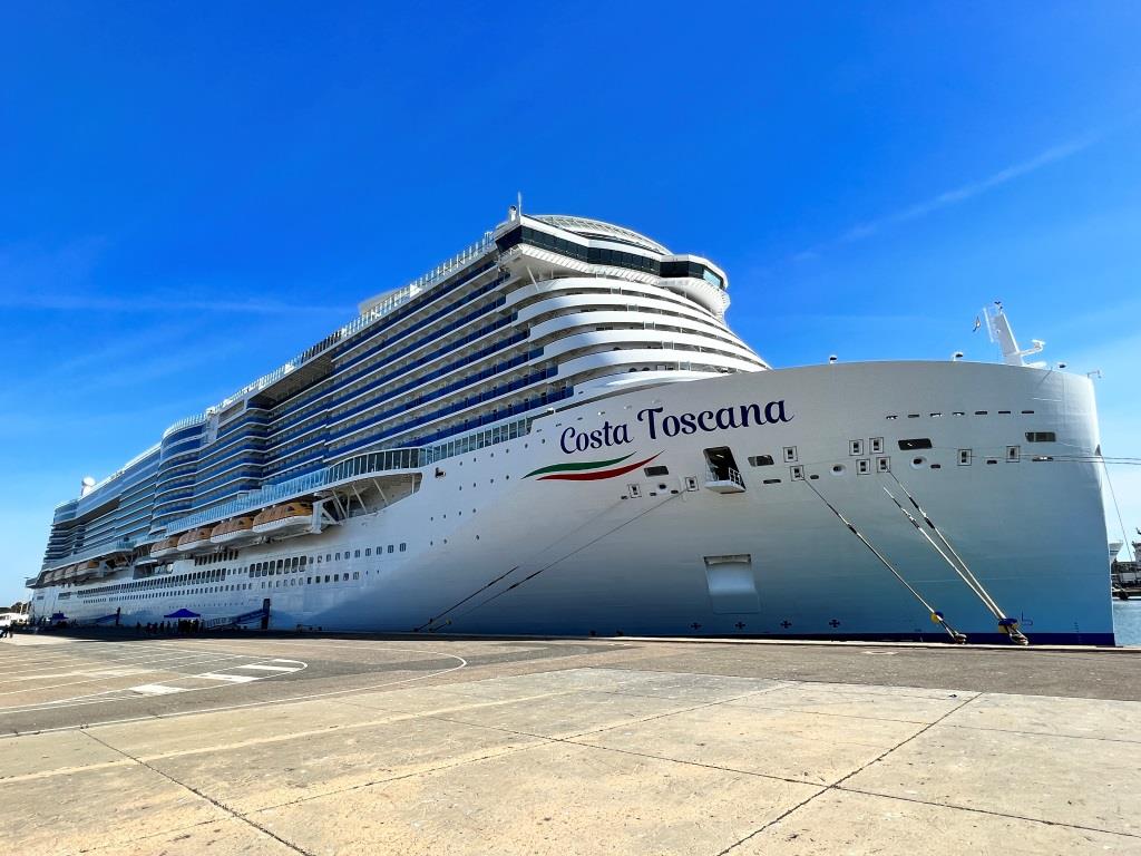 - Die Costa Toscana hier in ihrer ganzen Pracht am Kai von Cagliari. Ist schon ein dicker Brummer das Kreuzfahrtschiff!