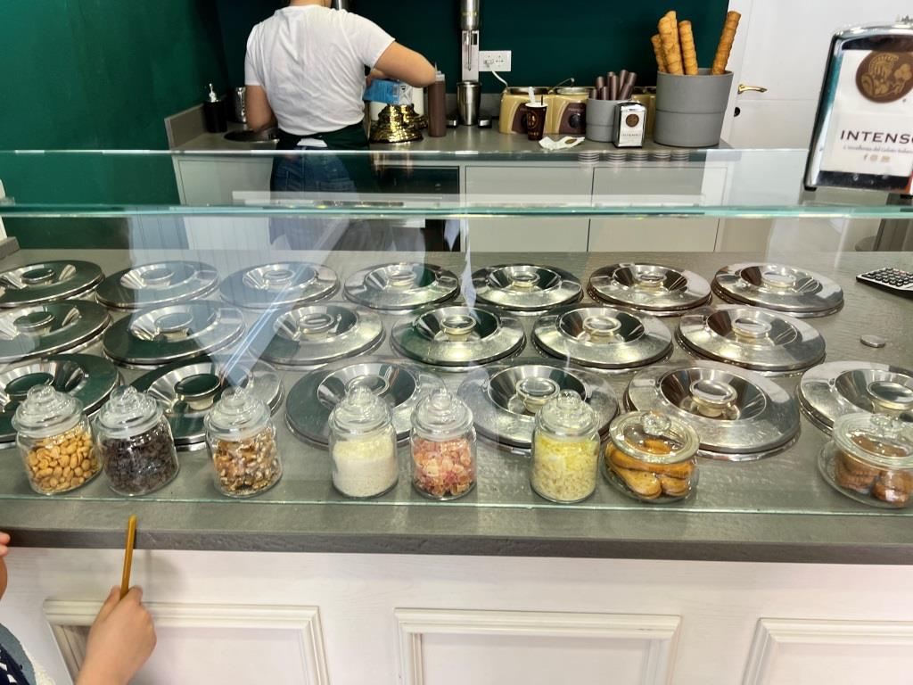 An der Gelateria Intenso holen wir uns ein leckeres Eis und einen hausgemachten Milchshake. Echt lecker und passt super zum Flanieren über die Einkaufsmeile.