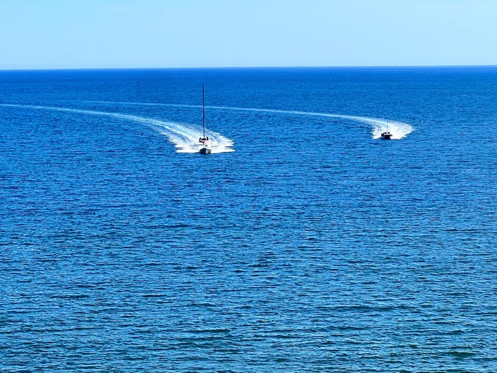 - Zwei andere schnelle Boote halten Kurs auf den Hafen