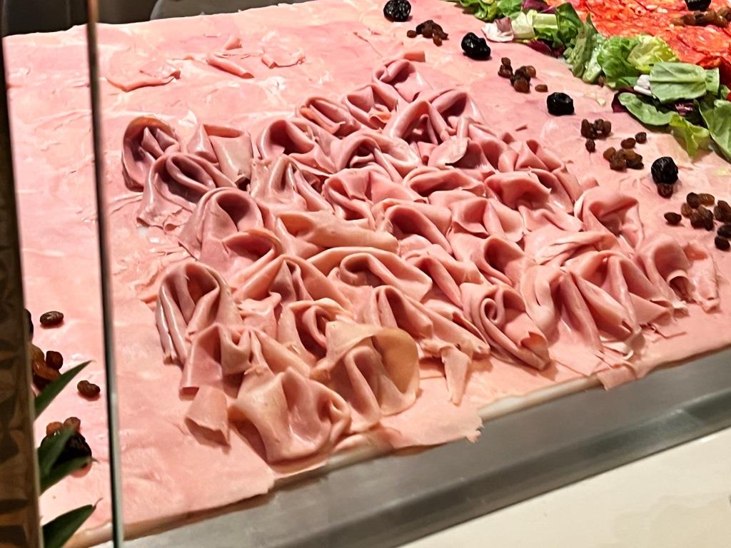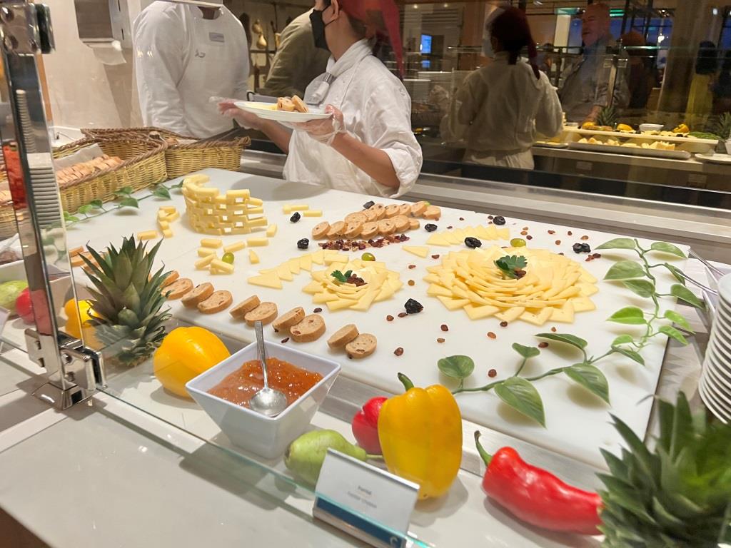 Wer übrigens eher abendessentypisch auf kalte Platte mit Brot, Wurst, Käse und Co Wert legt, kommt ebenfalls nicht zu kurz! Auch hier gibt es ein reichhaltiges Auswahlbuffet, welches wir euch gerne einmal zeigen. Auch, wenn unser Magen nach dem herrlichen Braten schon gut voll war, so ein kleines Bausteinchen vom Käse- Kolosseum passt eigentlich immer noch irgendwo dazwischen, oder? 😉
