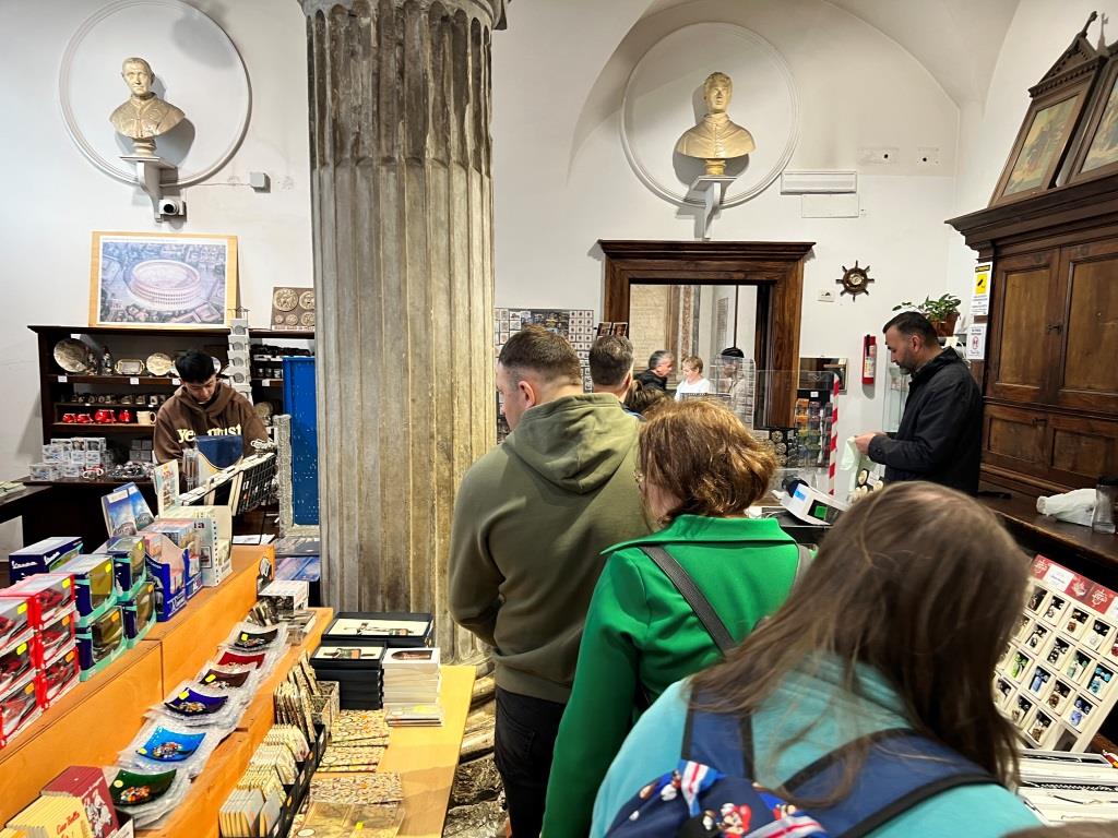 - Wir stöbern durch den vollen Souvenirshop