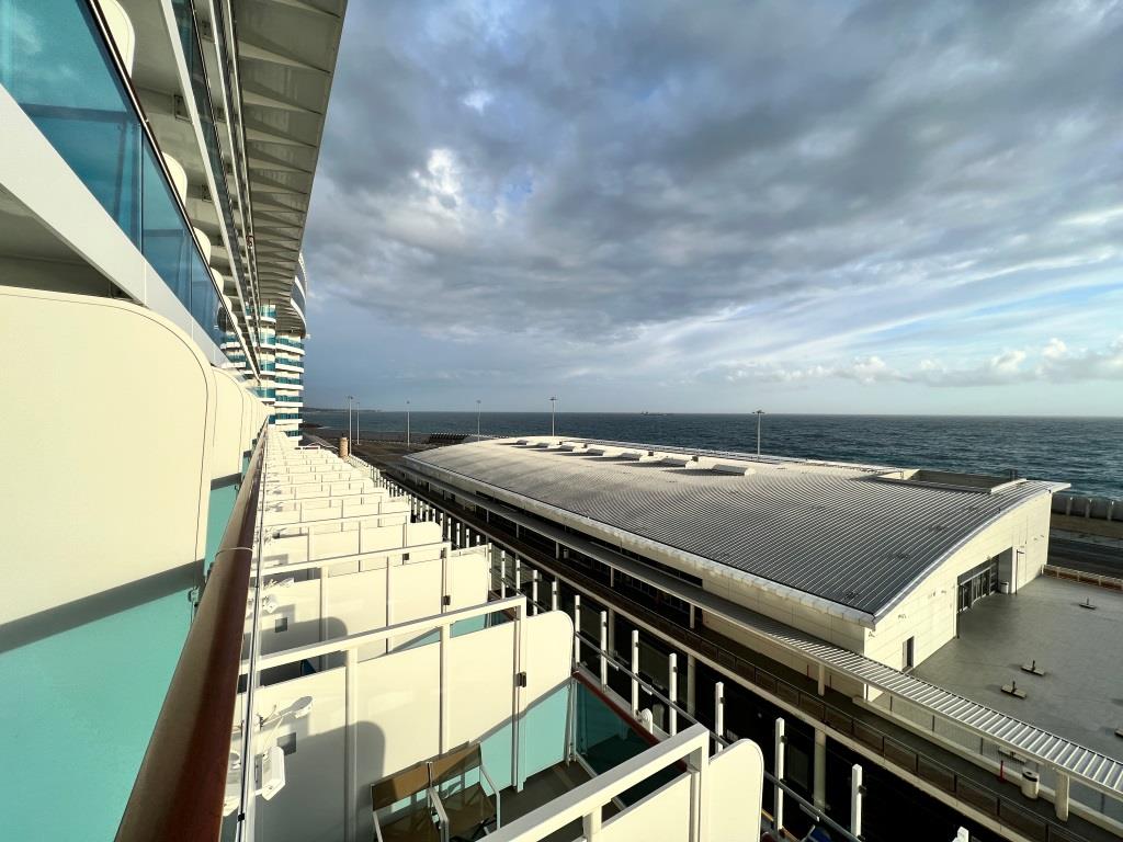 Nachdem wir aus dem Bus gestiegen sind, können wir uns recht schnell vom übrigen Feld der Reisenden absetzen. An der Sicherheitskontrolle ist hier noch gar nichts los, sodass wir komplett ohne Wartezeit die Sicherheitsschleuse passieren können und gegen 15:45 Uhr wieder unser Kreuzfahrtschiff betreten. Wir hätten zwar noch mindestens zwei Stunden Zeit gehabt, aber an Bord kann man ja auch noch was machen. Müsste ja eigentlich gleich um 16 Uhr Kaffee-/Kuchenzeit sein! 😉