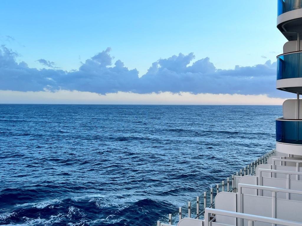 Die unbestätigte aber offensichtliche Erkenntnis über das Drama auf See scheint das Schiff in eine Art kollektive Schockstarre zu nehmen. Neben uns stehen viele andere Passagiere ebenfalls auf ihren Balkonen und auf dem offenen Außendeck des Infinity Decks unter uns. Niemand ist laut. Kein Kinderlachen, keine Freude ist zu hören. Allenfalls verhaltenes Gemurmel, leises und bedächtiges Flüstern. Mehr nicht. Die Nacht ist dunkel und ruhig, selbst das Meer scheint absolut still zu stehen. Gleich so, als würde selbst der Gott des Meeres für einen Moment inne halten.