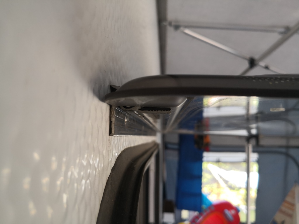 Nachdem wir das Fenster gut poliert und sauber gemacht haben, geht es nun wieder an den Einbau. Dieser ist nicht schwer und funktioniert umgekehrt wie der Ausbau. Einfach den richtigen Einbauwinkel anvisieren und dann das vorgehängte Wohnwagenfenster wieder in die Fensterleiste seitlich reinschieben. Wie immer unser Tipp, hier bei großen Fenstern bzw. beim ersten Versuch wieder mit zwei Personen zu arbeiten.
