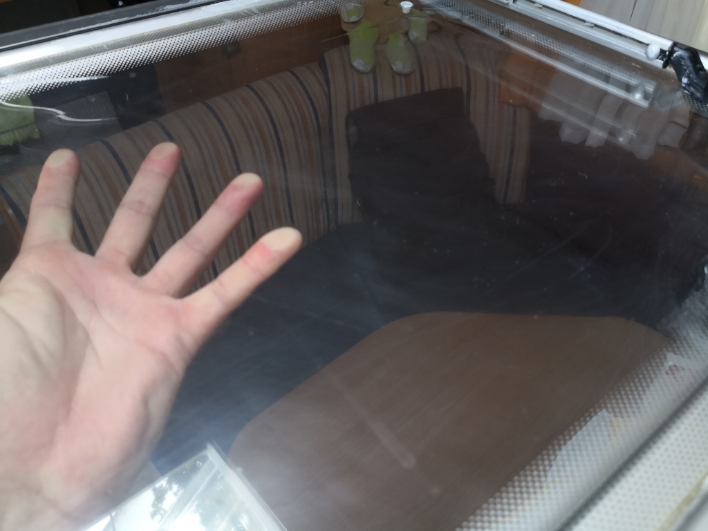 Als wir unseren großen Eifelland- Familienwohnwagen im Frühjahr 2018 gekauft haben, war das gute Stück annähernd makellos. Dass er bereits 10 Jahre Familieneinsatz auf dem Buckel hatte, sah man ihm praktisch nicht an. Zumindest fast nicht! Denn einige wenige Gebrauchsspuren gab es dann doch. Besonders in der Küche, die offenbar in der ersten Lebenshälfte rege genutzt wurde. Neben den Gebrauchsspuren an Schränken und Spüle war insbesondere das Wohnwagenfenster, ein Fenster aus Acrylglas, durch die nähe an Herd und Kochplatte sehr unansehnlich geworden. Regelrecht eingebrannt hatten sich diverse Fettspritzer und Spuren der intensiven Küchennutzung.