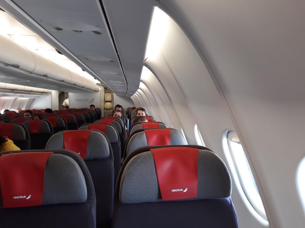 Und noch eine Überraschung erwartet uns! Der Flieger ist klein und eng! Gefühlt viel kleiner und enger, als die Zubringermaschine nach Madrid! Sogar der Sitzabstand wirkt kleiner! Kann doch nicht sein?!