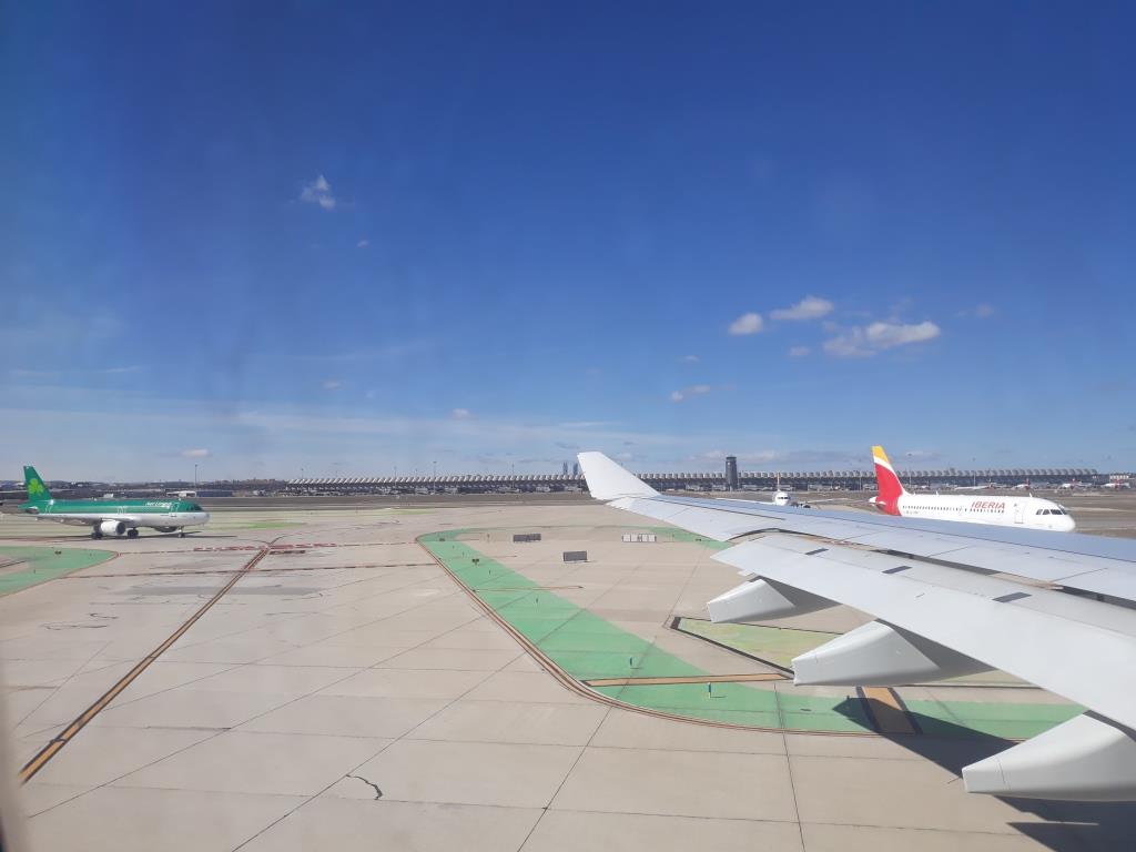 Der Flug nach Madrid verläuft ohne Probleme. Nur das Landen muss der Pilot noch üben! Zwar setzen wir sanft auf, allerdings offenbar deutlich zu früh. Knapp 10 Minuten fahren wir nämlich anschließend durch den Vorortverkehr von Madrid, bis wir am Terminal ankommen. Jetzt heißt es sputen! Etwas mehr als eine Stunde bleibt uns, um den Terminalwechsel vom Terminal 4 zum Terminal 4S zu vollziehen. Mit vollen Händen Handgepäck und zwei Kindern versteht sich! Aus dem Internet weiß ich, dass wir hierfür mit diversen Laufbändern, aber auch mit einer Untergrundbahn fahren müssen, die die Terminale 4 und 4S miteinander verbindet. Also los!