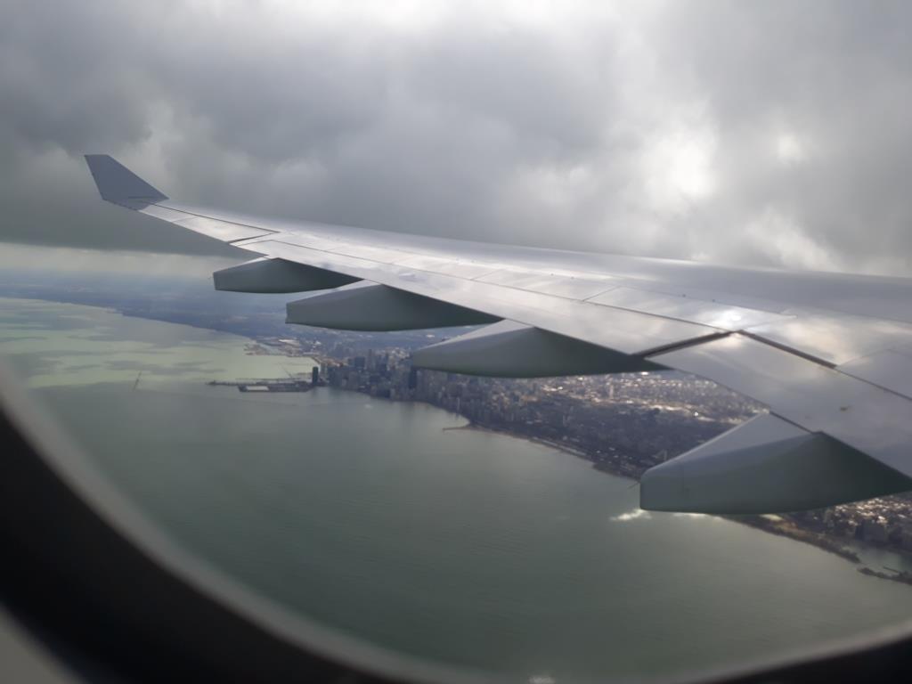 Ansonsten vergeht die Zeit gar nicht wie im Flug. Buchstäblich. Ungewöhnlich zu berichten sei vielleicht noch, dass obwohl es sich ja um einen Tagflug handelt, das gesamte Flugzeug mehr oder minder gleich nach dem Mittagessen komplett verdunkelt wird. Wer seine Luke auch nur einmal kurz einen Spalt öffnet, um einen Blick auf den Ozean oder das in der Ferne nahende Neufundland zu werfen, wird von der Meute der Fluggäste arg böse beäugt und ein Raunen geht durch die Menge.