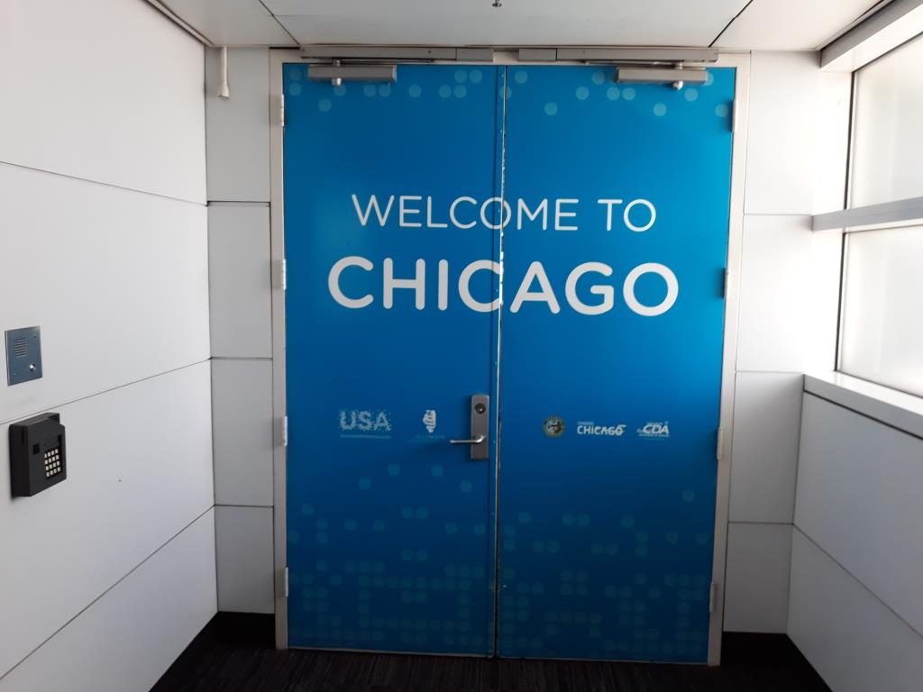 Wir landen sanft und bekommen ein weiteres Mal schon gleich hier am Flughafen einiges von Chicago zu sehen! Schade, dass die Gegend rund um den Flughafen so trist ist! Sonst wäre die gefahrene unglaublich große Platzrunde bis zu unserer finalen Parkposition auf dem Airport durchaus als interessante Stadtrundfahrt durchgegangen…