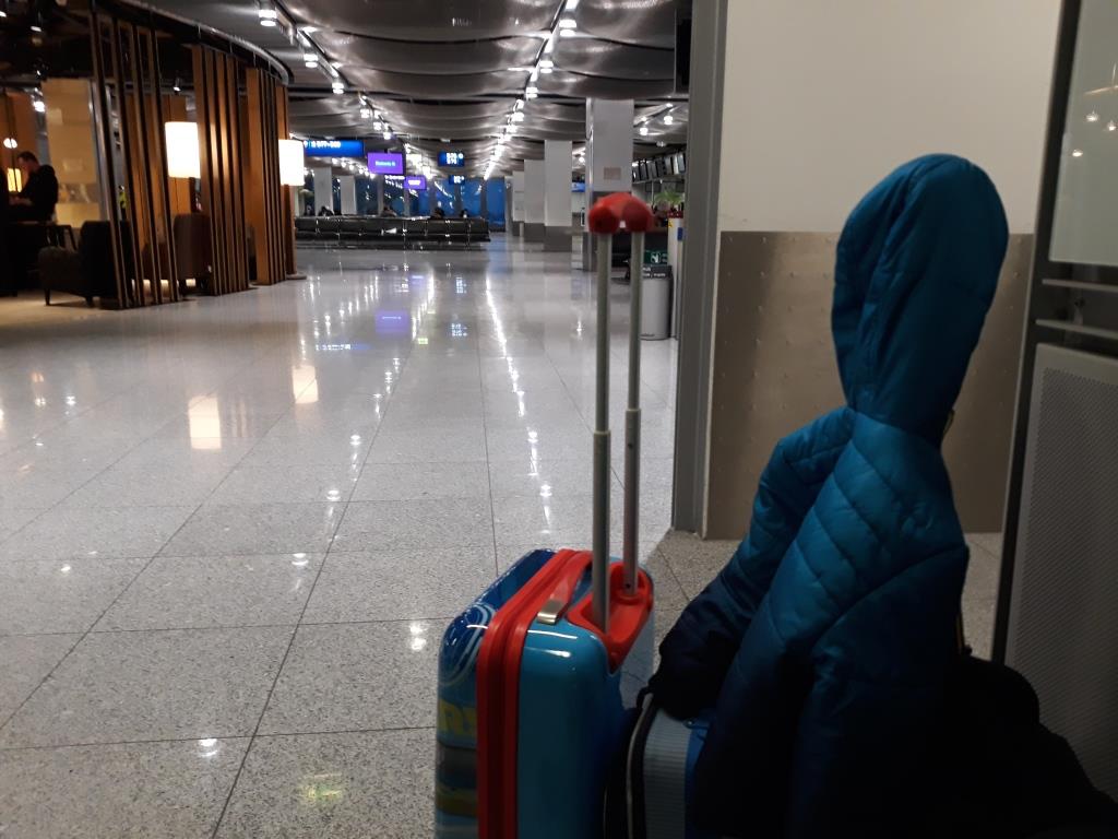 Einen Puls von 190 am frühen Morgen später bin ich wieder bei meiner Truppe. Macht ungemein wach so ein Sprint durch das halbe Terminal im Morgengrauen, das kann ich euch sagen!