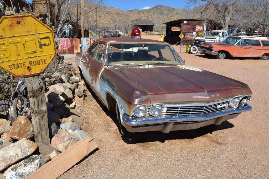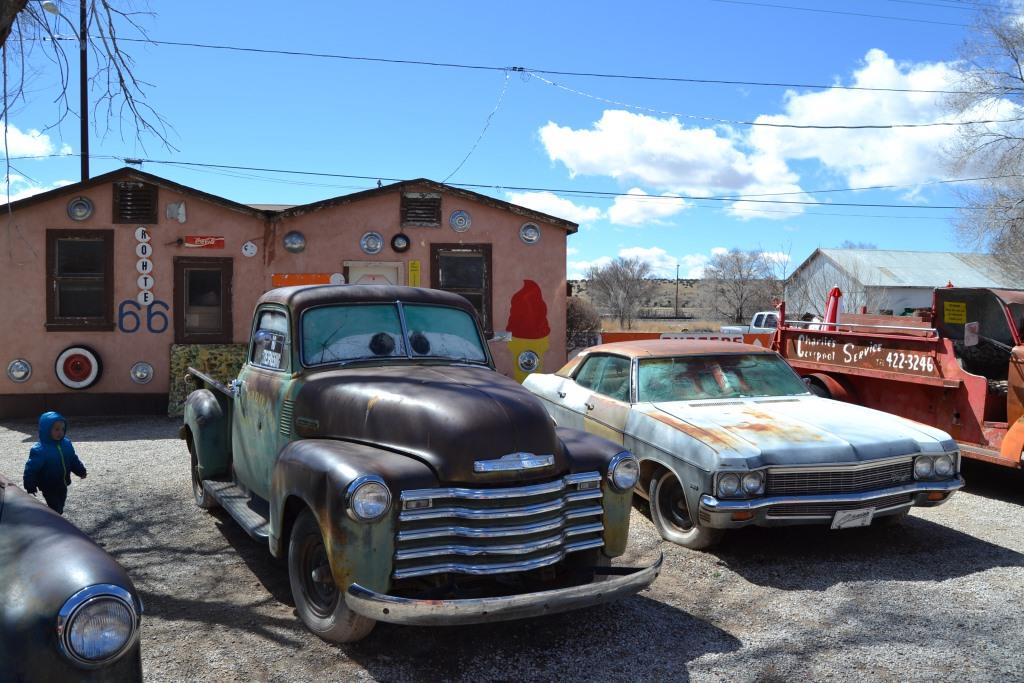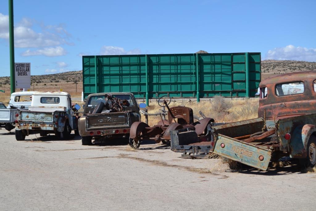 Einen Abschleppwagen stellt sich wirklich JEDER vor die Türe, der ein Geschäft aus der Kategorie Route 66 betreibt! Hauptsache Hook! Disney‘s Cars lässt ein weiteres Mal grüßen. Zum Glück haben sie nicht alle Autos mit den typischen weißen Scheiben und zwei schwarzen Punkten als Augen versehen. Denn so kommen wir ein weiteres Mal in den zweifelhaften Genuss, einige echte zeitgenössische Automobile beim ungeschönten Verfall beobachten zu können.