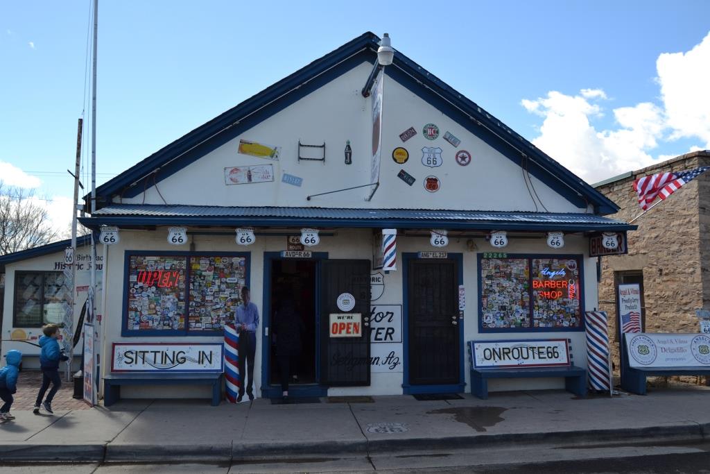 Das wohl besuchenswerteste Highlight ist der Frisörladen von Angel Delgadillo! Herr Delgadilo ist einer der Gründerväter! OK, er ist nicht einer DER Gründerväter der vereinigten Staaten von Amerika, aber er ist einer der Mitbegründer der Route 66 Association, die es geschafft hat, aus der verfallenden Straße mit ihren brach liegenden Geschäften nach Inbetriebnahme der Interstates so etwas wie ein romantisch verklärtes Geschäftsmodell zu entwickeln. Sein Laden (früher ein Frisörsalon, heute ein uriger Souvenirshop) steht beispielhaft als Anregung für alle, die sich mit dem Kitsch der Route 66 eine Existenz aufbauen wollen quasi eine unerreichbare 100% Musterlösung für diese Aufgabe anschauen möchten. Herr Delgadillo selbst hat sich übrigens durch sein Lebenswerk und Engagement den Namen als „Vater der Mother Road“ verdient.