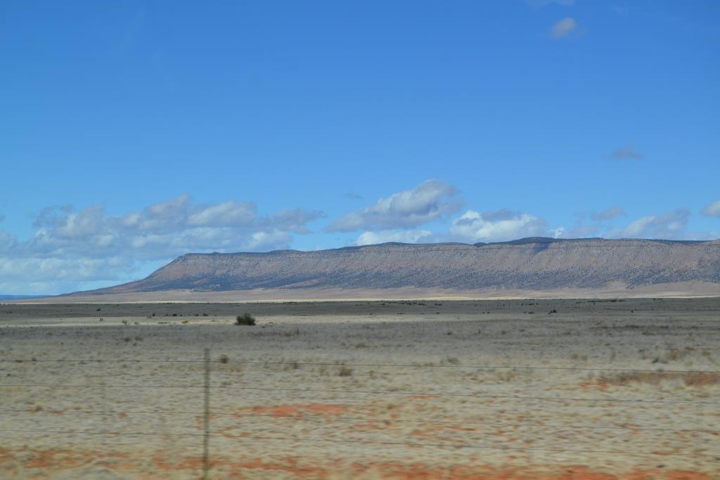 Um 10:15 Uhr Ortszeit sind wir startklar für unseren weiteren Weg Richtung Westen! Das nächste Ziel neben der Interstate 40 soll Ash Fork werden. Unser Reiseführer schweigt sich zu Ash Fork zwar aus, aber aus dem Netz wissen wir, dass es dort ein Auto geben soll. Gut, das ist jetzt nichts besonders. Aber es ist zum einen ein alter Ami- Schlitten und dieser soll seit geraumer Zeit auf dem Dach eines Frisörsalons oder eines Restaurants parken. Ob jetzt Restaurant oder Frisörsalon ist noch egal, es kommt auf das Gesamtbild an. Davon abgesehen soll hinter Ash Fork aber auch wieder endlich die echte, alte Route 66 neben der Interstate 40 herlaufen. Bis dorthin liegt sie eben weiterhin verdeckt und überbaut durch den modernen Highway.