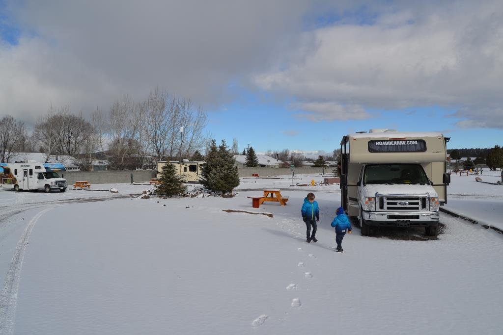 - Überraschung! Der Winter hat über Nacht Einzug gehalten und den Campingplatz in eine glitzernden Schneelandschaft verwandelt. Schön anzusehen, ja, aber dennoch können wir darauf gerne verzichten. 😉