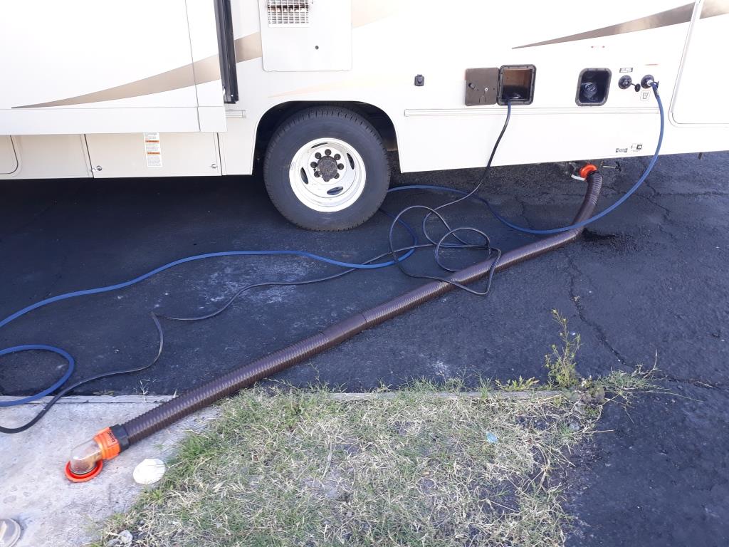transitfrei- USA- Wohnmobiltipp Nr. 14: Die Lösung ist übrigens denkbar einfach wie simpel! Wir haben es nur schlichtweg nicht gewusst und bei der Einweisung seinerzeit wurde es uns nicht erklärt. Logisch, denn wie gesagt war das Wohnmobil seinerzeit neu und der Schlauch im Karton. Er kommt nach Gebrauch in die Stoßstange!