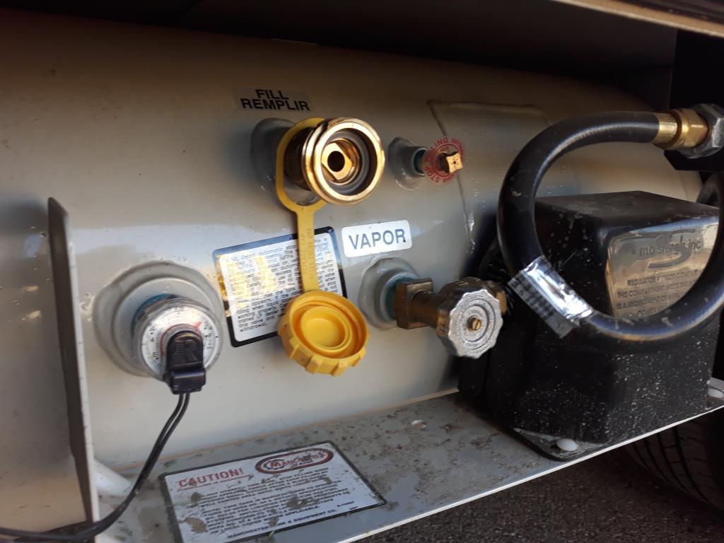 Nachdem ich also den Schlauch ein letztes Mal im Karton verstaut habe, geht es los! Das Wohnmobil muss zurück und an der Roadbear- Vermietstation gleich gegenüber des Roadrunner RV Parks abgegeben werden. Wir müssen uns nur noch um die letzten beiden Tanks kümmern. Einmal den Kraftstofftank und einmal den Gasvorratstank. Beide müssen bei Rückgabe voll sein.