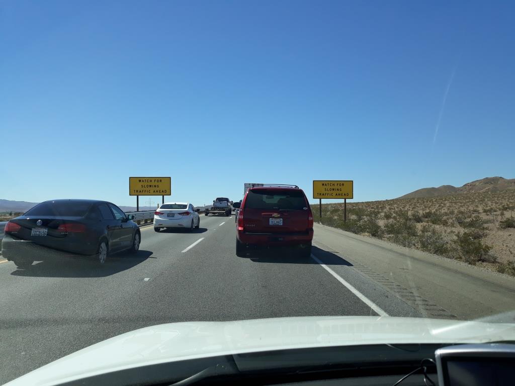 Etwas geknickt fahren wir weiter. Ich versuche mich mit dem Gedanken zu trösten, dass das fehlende Tablet mir die Wahlmöglichkeit genommen hat, die 260km zurück nach Vegas zu fahren oder nicht. Ich weiß genau, dass wenn ich gefahren wäre, mich furchtbar über mich selbst geärgert hätte, weil wir eben durch eigene Schusseligkeit nun Geld und Zeit investieren müssen! Gleichwohl hätte ich mich ebenso geärgert, wenn wir eine andere Lösung gefunden hätten! Denn mit jedem Meter, den wir uns weiter auf Anaheim zu und von Las Vegas weg bewegen, entfernen wir uns auch von der schnellsten Lösung das Tablet wieder in den Händen zu halten! So nah, wie jetzt aktuell, wären wir ja in der nächsten Zeit nicht mehr dran!
