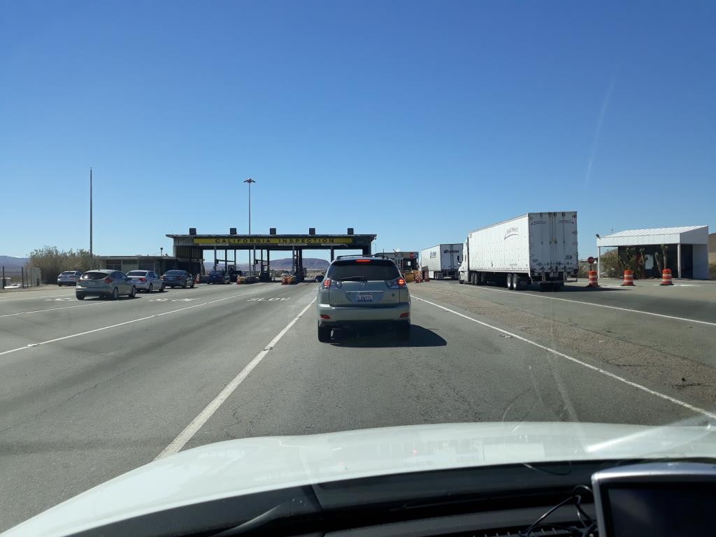 Es handelt sich aber nicht wirklich um eine klassische Grenzkontrolle, wo jetzt zum Beispiel Ausweise überprüft werden. Viel mehr kündigen die Beschilderungen an, dass wir uns einer Agricultural Inspection unterziehen sollen. Wir vermuten, dass es um Samen, Obst, Früchte oder Gemüse gehen könnte. Und tatsächlich ist das auch so! Wie wir später unter anderem hier nachlesen versucht Kalifornien damit das Eindringen von Schädlingen in die heimische Landwirtschaft zu verhindern. Bei uns scheint man aber keine Gefahr zu wittern. Wir werden von einem müde wirkenden Beamten einfach durchgewunken.