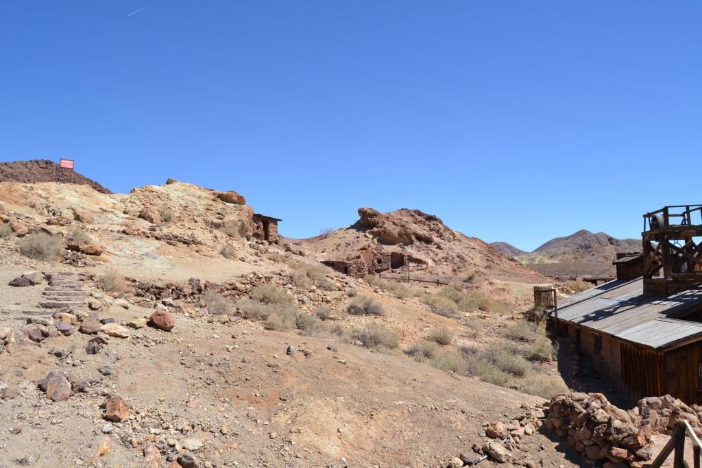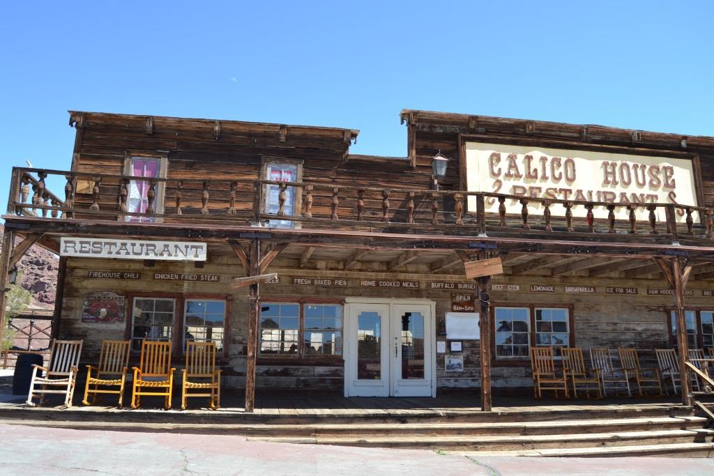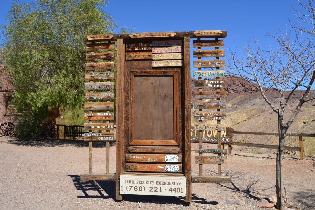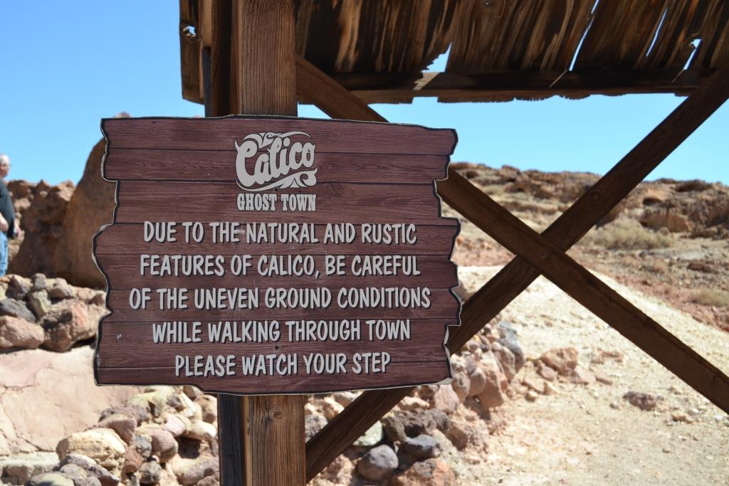 Nachdem wir die Grenze zu Nevada endgültig hinter uns gelassen haben, folgt noch ein kurzes Stück offene Weideprärie. Es sieht sehr westernmäßig hier aus und als wir nur wenige Minuten später die Einfahrt nach Calico erreichen, könnte die alte Western- und Geisterstadt kaum stimmiger in die Szenerie eingebettet sein. Die Uhrzeit passt perfekt, die Sonne scheint, der Himmel ist blau, bestes T- Shirt- Wetter, kurzum, wir freuen uns richtig auf den Besuch der kleinen Westernstadt. Hier werden wir bestimmt auch einen authentischen kleinen Mittagssnack bekommen, ja?! Sowas wie Frettchen am Spieß oder was auch immer die alten Cowboys damals verschnabuliert haben… 😉