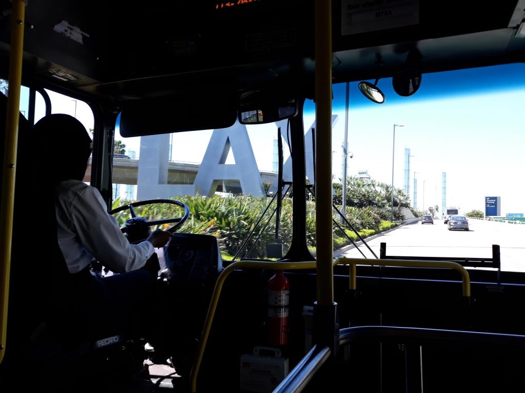 Den Shuttlebus heute fährt Myra! So steht es zumindest auf dem Namensschild über der Frontscheibe. Eine afroamerikanische Mitvierzigerin mit Haare auf den Zähnen! So resolut, wie diese Dame den Bus durch den anschließenden Verkehr bewegt, nötigt einem schon Respekt ab! Der Bus ist laut, rumpelig und Myra hat alle Hände voll zu tun, vorne das archaische Steuerrad auf Kurs zu halten. Sie kurbelt hier, kurbelt da. Und quetscht sich vor den einzelnen Terminalen in Parklücken rein, die ich selbst mit dem SUV nicht angesteuert hätte! Auch von der Hupe macht sie rege Gebrauch und verscheucht so manchen Kurzparker, der nur flott ein paar Koffer ausladen und einen Fluggast verabschieden wollte. Dazu hat sie auch für wirklich ausnahmslos jeden einen passenden wie lautstarken Kommentar übrig! Eine richtige waschechte Droschkenkutscherin, die selbst die versammelten Wiener Fiaker vor Angst und Ehrfurcht erstarren lassen würden!