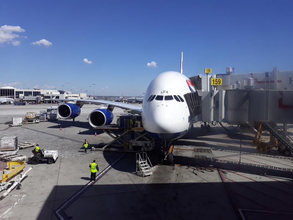 - Das steht sie! Oder er! Der mächtige Airbus A 380! Er (oder sie 😉 ) wird uns dann hoffentlich sicher, warm und trocken über den großen Teich zurück in die alte Heimat nach Europa fliegen. 🙂