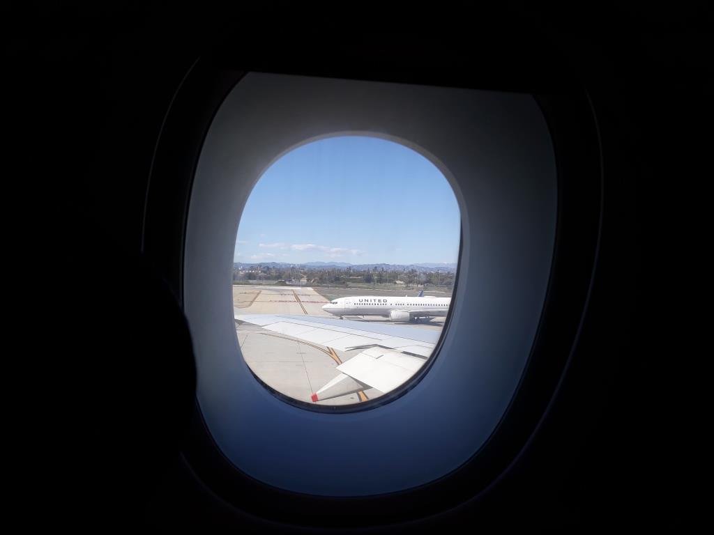 - kleines Fenster – großes Flugzeug! Wir blicken auf andere Flieger herab…