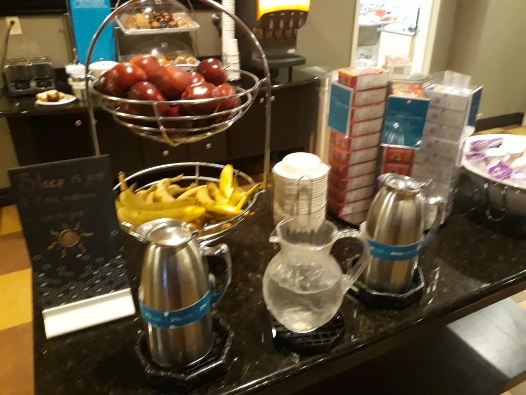 Die einzigen, die noch wacher sind als wir, scheinen die Amish zu sein! Denn neben uns sind nur wenige Leute im Frühstücksraum, denen wir um kurz nach 6 im Schatten des Frühstücksbuffets begegnen.