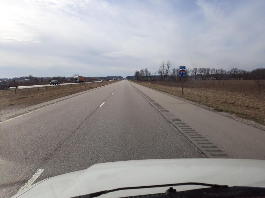Zu viert in einem Boot ist die Fahrt nun natürlich deutlich leichter. Ich muss nicht mehr in den Spiegel schauen und gucken, dass unser Begleitschutz dran hängt (als ob ich Anja mit dem Wohnmobil wirklich jemals hätte abhängen können…), ich kann frei fahren. Immer dem Horizont entgegen, während sich Anja um das Bordprogramm kümmert. Die Route führt uns nun zuerst weiter auf der IN-15, dann über die ersten Highways und später nehmen wir auch die erste Interstate unter die Räder, was allerdings weniger Freude bereitet, als zunächst angenommen. Ich hatte noch gehofft, dass die Straßenverhältnisse, wenn wir erst auf der Interstate sind, deutlich besser werden würden. Aber das, was wir hier vorfinden, lässt nur einen Schluss zu: Indiana in den USA und Belgien in Europa sind garantiert Partnerländer! Gegenseitig können sie sich nämlich damit brüsten, dass sie jeweils nicht die schlechtesten Straßen auf der Welt haben und jeder versucht, den anderen zu unterbieten. Oh-Mann! Wenn es für das Wohnmobil von Roadbear bzw. von Coachmen so etwas wie einen Härtetest gibt, dann rütteln wir diesen gerade hier ab! Halten die Schränke in den Verankerungen an der Wand?!