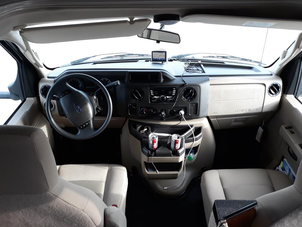 Soll heißen: Kein Tempomat mehr, der stets krampfhaft versucht, die eingestellte Geschwindigkeit zu halten! Hier in den USA und besonders beim Wohnmobil auch dadurch, indem er selbsttätig einen Gang herunter schaltet, kaum dass man eine Meile langsamer als eingestellt unterwegs ist. Dann brüllt der knapp 7 Liter 10 Zylinder Hubraummotor natürlich auf und man kann das Gebirgsbächlein aus dem Motorraum hören. Nur, dass das der durch die Spritleitung laufende Kraftstoff und kein Gebirgsbächlein ist…