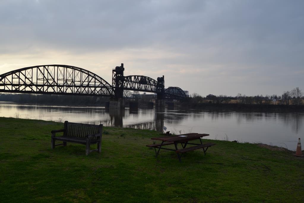 Von der Polizeistation aus spazieren wir runter Richtung Flussufer und dann durch den Park allmählich zurück Richtung Brücke. Die Sonne wärmt uns dabei wunderbar und lässt den nahenden Frühling wirklich endlich fühlen. Ab jetzt kann das Wetter nur besser werden! Denn jetzt kommen ja erst noch die warmen Staaten wie Texas, Nevada oder Kalifornien.