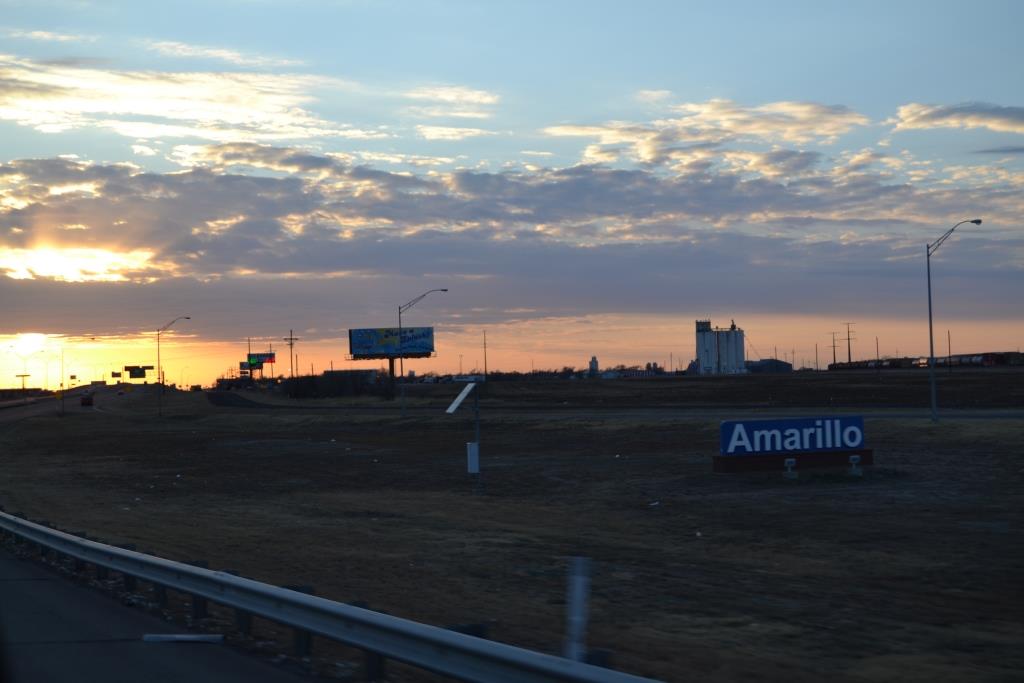 - Einfahrt nach Amarillo, Texas mit den letzten Sonnenstrahlen an diesem Tag.