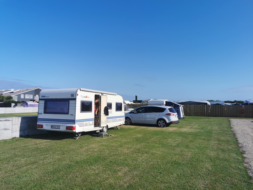 Ansonsten verlief die Fahrt über Land auf der 181 bzw 11 ohne Probleme. Alle Straßen waren breit genug. Einzig beim Super Brugsen in Lökken war es dann wieder voll und wir mussten die Straßenverkehrsregeln zu unseren Gunsten ein wenig biegen, damit wir mit Wohnwagen am Haken den Parkplatz nutzen und einkaufen gehen konnten. Dieses Schicksal hätten wir aber auch mit dem Wohnmobil gehabt. Denn für diese hätte auch kein besserer Parkplatz zur Verfügung gestanden. Alles in allem also auch heute wieder ein erfolgreicher Tag für unsere Wohnwagen- Rundreise hier in Dänemark