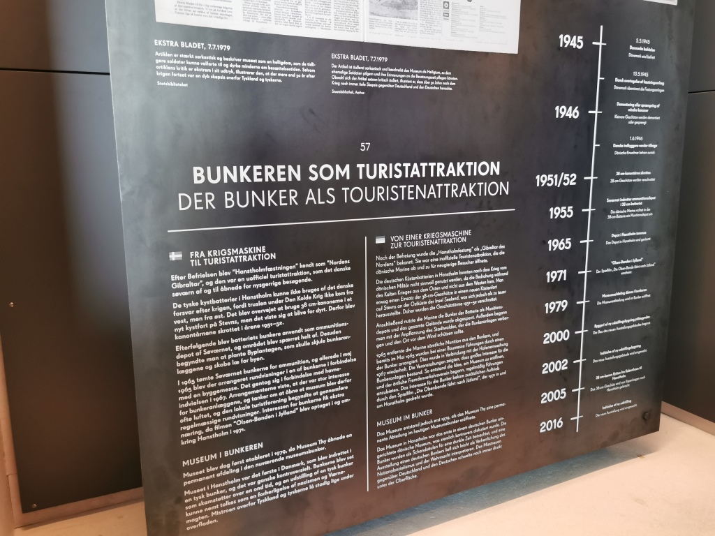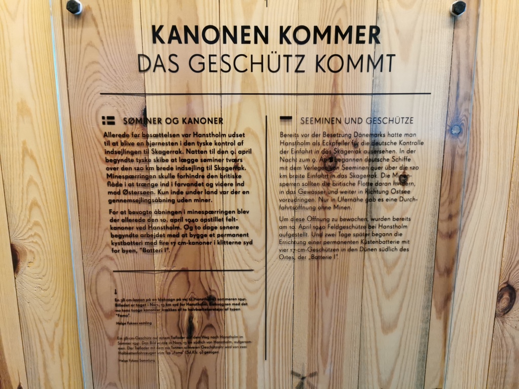 Das Bunkermuseum von Hanstholm gilt als größte Befestigungsanlage des zweiten Weltkriegs! So unscheinbar das Areal von außen / oben auch wirkt, unter der Erdoberfläche hat die deutsche Ingenieurskunst ganze Arbeit geleistet! Auf einer Grundfläche von über 3000qm2 finden sich Munitionsräume, Mannschaftsräume, Schlafstätten, technische Einrichtungen für Licht und Wärme, Kartenräume, Gefechtsstände und vieles mehr. Highlight ist zweifelsohne aber die alte Kesselbettung, auf der eine der vier der berüchtigten 38cm (ja! cm!) Kanonen aufgestellt war, die das Meer und den Skagerrak bis zu einer Entfernung von 55km unter Feuer nehmen konnte! Diese wuchtige Kanone fehlt leider heute. An ihrer Stelle ist aber eine andere 38cm Kanone getreten, die ursprünglich mal für ein Upgrade des Schlachtschiffs Gneisenau von seinerzeit 28cm auf 38cm Kaliber vorgesehen war, aber nie zum Einsatz gelangte. Neben dieser ebenfalls eindrucksvollen alleinstehenden Kanone finden sich im Freigelände eine 15cm Kanone, eine russische 12cm Feldkanone, eine 10,5 cm Flugabwehrkanone und weitere diverse Flakbatterien deutscher und internationaler Schießkunst.