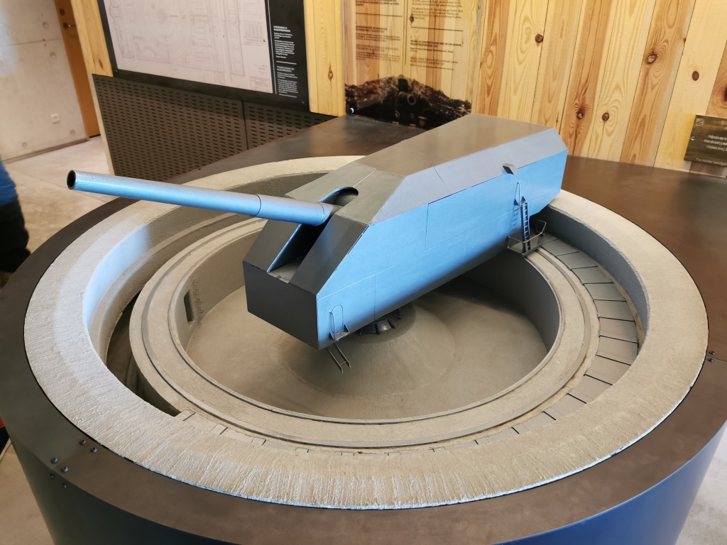 Neben der Bunkeranlage und der Kanonen gibt es auch noch eine kleine Munitions- Eisenbahn im Freigelände, die heute als Museumsbahn die etwa 1km lange Strecke abfährt. Man kann gegen ein kleines Entgelt mitfahren.