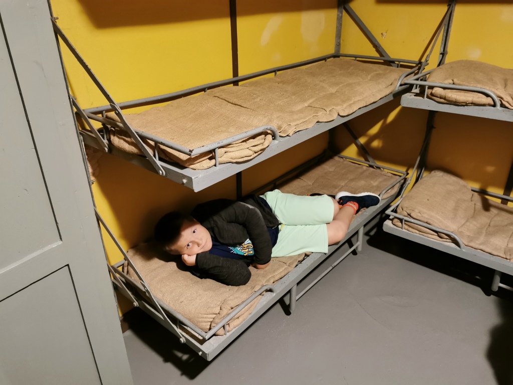 Nachdem wir durch zahlreiche Räume patrouilliert sind und neben dem Bunkerleben auch noch weitere Geschichten, z.B. über die letzte Fahrt der Bismarck, erzählt bekommen haben, endet die wirklich sehenswerte Tour unvermittelt an einem Nebenausgang. Das ging jetzt fast zu schnell irgendwie! Aber es hat sich gelohnt! Dafür, dass wir eigentlich zuerst skeptisch waren und Sorge hatten, dass unsere Jungs uns doch wieder nur gelangweilt von Vitrine zu Vitrine folgen, sind die zwei recht abenteuerlustig durch die Bunkergänge geflitzt. Hat sich wirklich gelohnt, kann man für Kinder ab 6 Jahren und älter, die gerne durch alte Gemäuer stromern, absolut empfehlen!