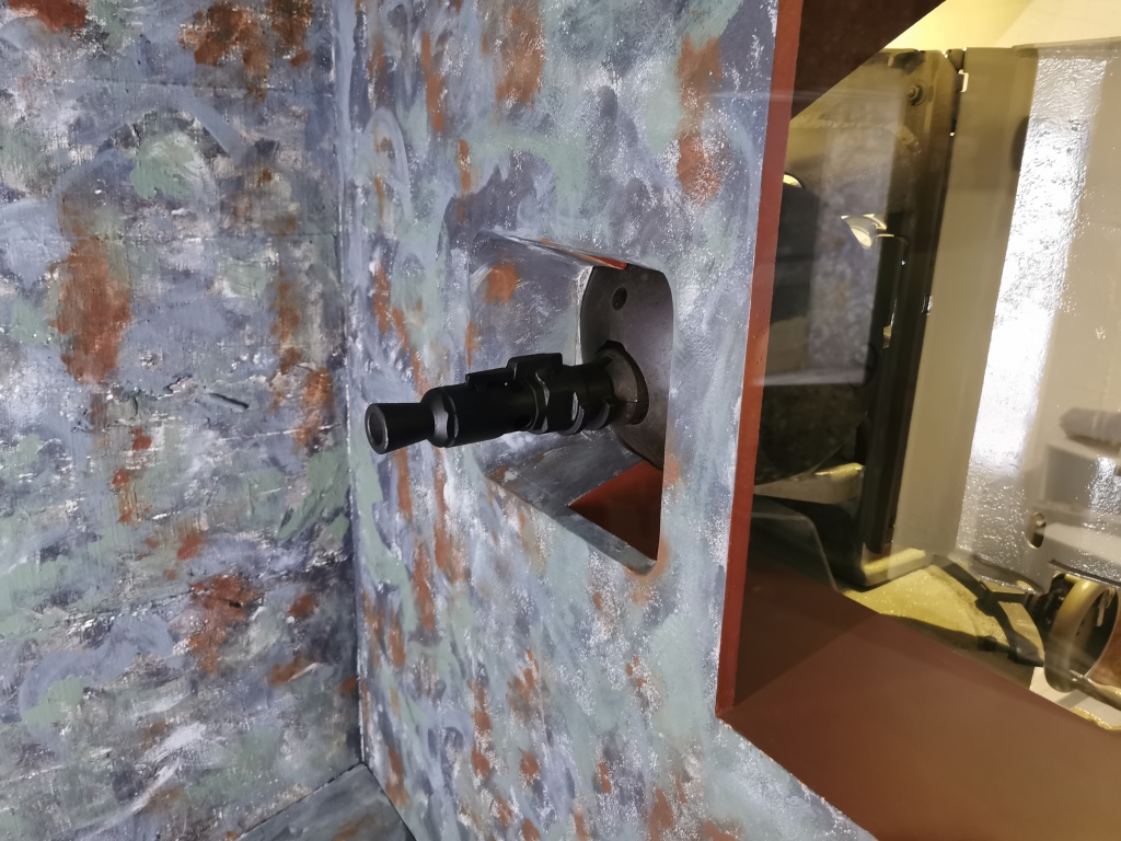 - die alte Kesselbettung, worauf das mächtige Geschütz in einem drehbaren Turm montiert war. Eindrucksvolle Konstruktion!