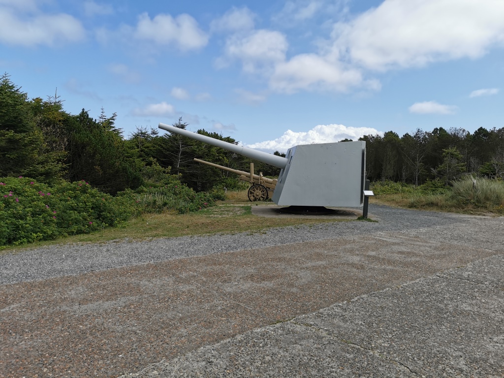 Natürlich steht hier auch eine der „dicken Brummer“ mit 38cm Kaliber! Das ist vom Durchmesser her mehr, als mein altes Schullineal an Länge hergegeben hat! Muss man sich mal vorstellen! Die Kanone hier ist zwar nicht die, die ursprünglich an dieser Geschützstellung beteiligt war, aber eindrucksvoll ist sie natürlich trotzdem.
