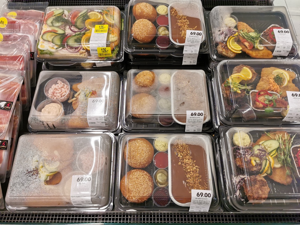 Im Supermarkt selbst ist es nicht minder voll. Wow! Steht ein Feiertagswochenende bevor oder sowas? Der Laden hier hat doch an allen Wochentagen bis 22 Uhr geöffnet! Warum ist denn hier so viel los bitte? Naja, egal! Nützt ja nichts, müssen wir durch! Wir schlagen uns durch die leckeren Angebote, die mit leerem Magen besonders schwer fallen nicht zu beachten. So mag es nicht verwunderlich sein, dass zunächst ein paar herrlich marinierte Spareribs und ein paar Schinkenschnitzel für den Grill in den Einkaufswagen wandern. Als Nils aber spontan seine Lust auf selbst gemachte HotDogs äußert, disponieren wir nochmals kurzfristig um. Bis wir nachher eingecheckt haben, der Wohnwagen steht und wir den Grill anwerfen, wird es einfach zu spät für den Grill. HotDogs gehen hingegen schnell und schmecken ja auch lecker. Dazu noch Milch, Brot, Wurst, eine neue Packung von dem leckeren Havarti- Käse und dann geht es auch schon zur Kasse.