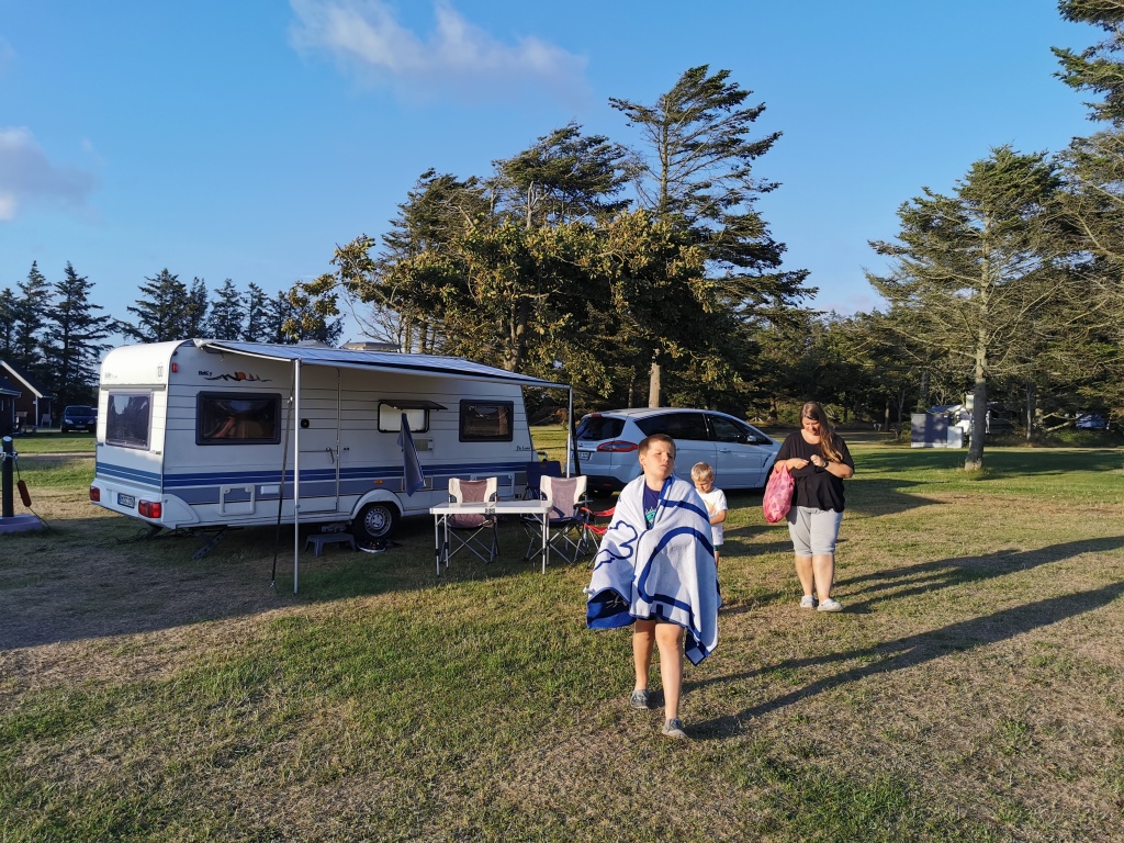 Als die Sonne beginnt sich hinter den Wolken zu verstecken, trocken wir uns schnell ab und kehren zurück zum Wohnwagen.
