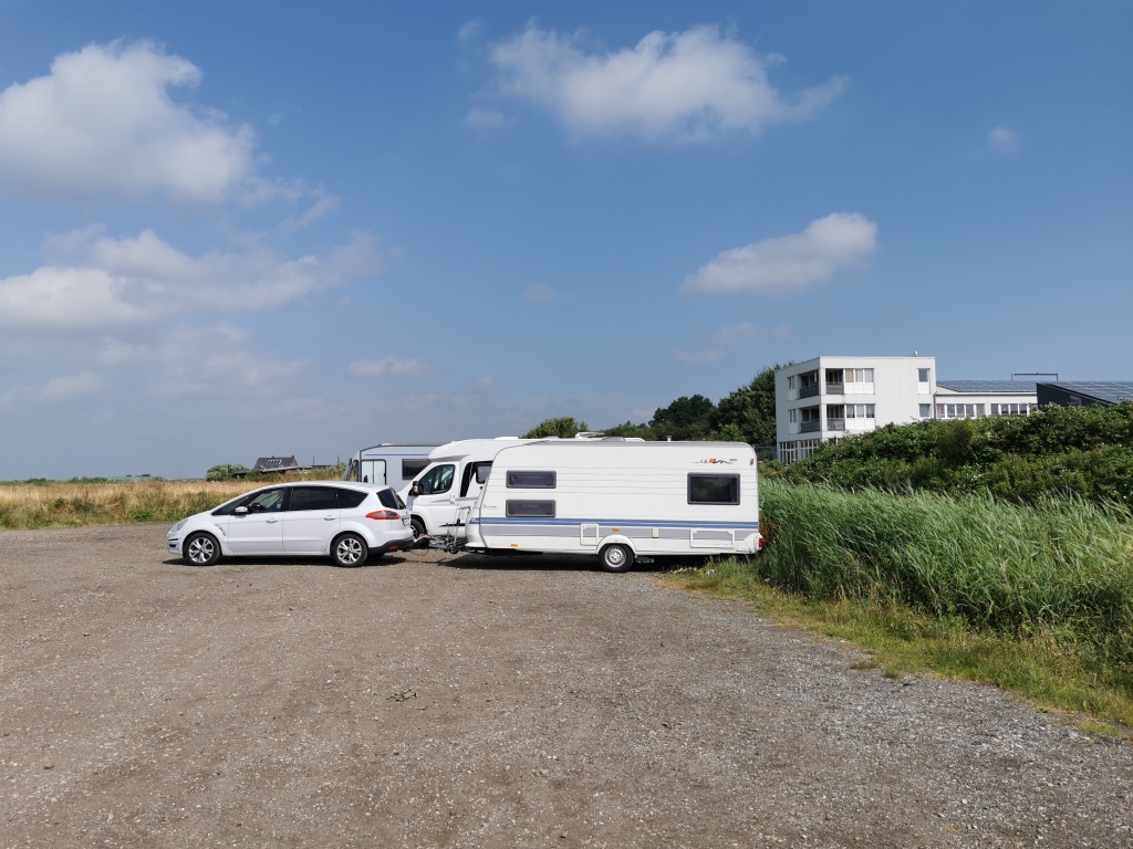 Heute waren wir mit dem Gespann buchstäblich mit einer Nasenlänge gegenüber den Wohnmobilen voraus! Auf dem Parkplatz am Hafen von Husum konnten wir nur quer zur Fahrtrichtung parken, sodass die Nase unseres Zugfahrzeugs als weitestes Fahrzeug nach vorn und zwischen den Wohnmobilen heraus ragte. Gepasst hat es dort dennoch. Wie schon am Vormittag zum Frühstück auf dem Dorfplatz. Heute, am Tag 2 und ersten „echten“ Reisetag, standen wir mit unserem Gespann den Wohnmobilen in nichts nach. Und selbst die Parzelle hier auf dem Campingplatz ermöglichst uns morgen früh, für den Trip an den Autostrand von Römö, einfache geradeaus rauszufahren. Läuft also! So darf es gerne bleiben… 🙂