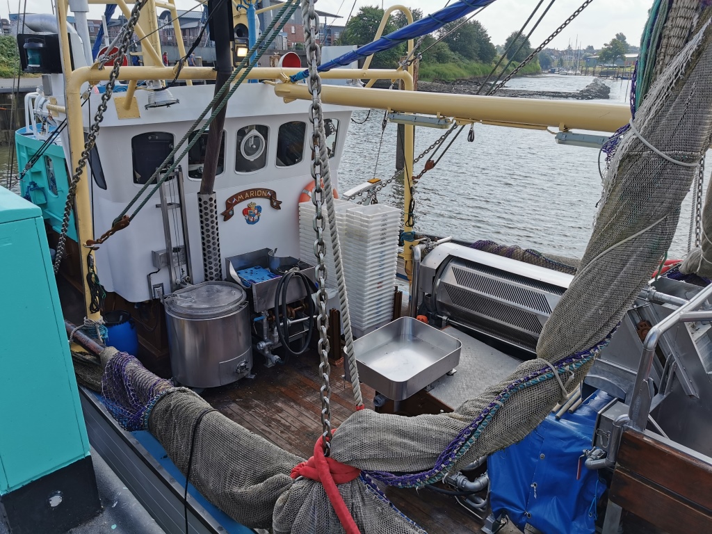 - Am Kai liegt ein Fischkutter. Er wirkt aufgeräumt und sauber