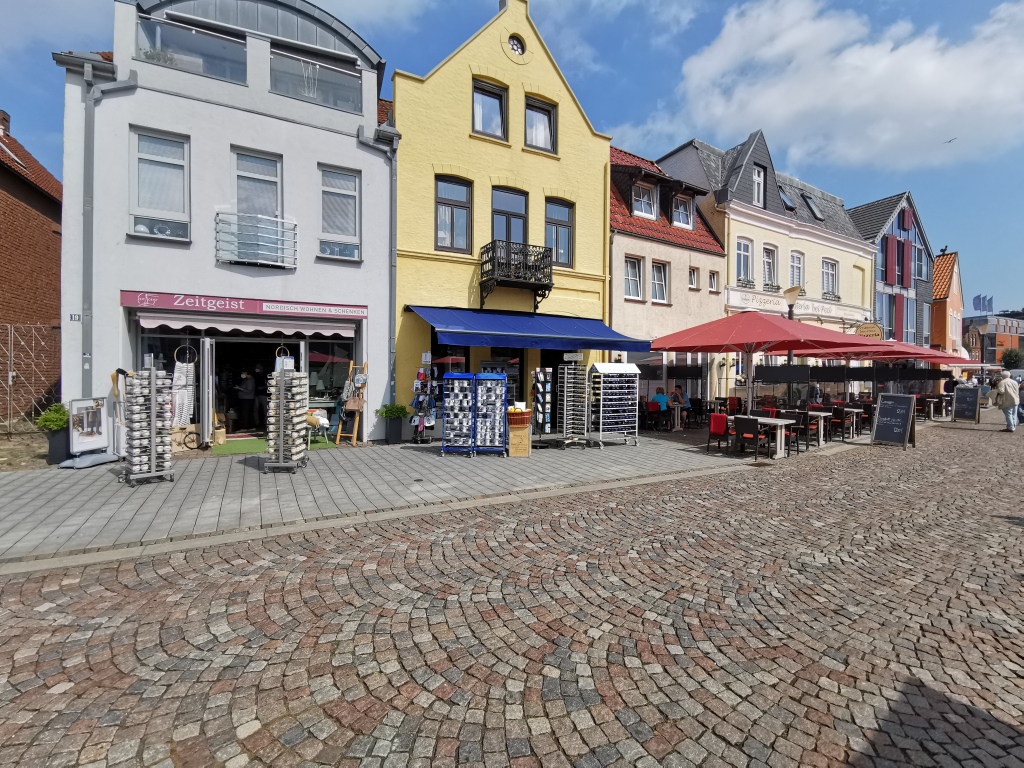 Im Hafen beginnt das wuselige, touristische Treiben, die Fischbrötchenbuden, Restaurants und Souvenirläden haben sich herausgeputzt. Hier und da wird noch sortiert und die Auslage bestückt, aber die ersten Touristen scheint das nicht zu stören. Auch wir sind entschlossen, nach unserem Rundgang durch Husum und Abschluss unseres Besuchs noch ein leckeres Fischbötchen zu genießen. Bei unserem ersten Besuch von Husum mit dem Wohnmobil haben wir zwar nicht so gute Erinnerungen an das gastronomische Fischbrötchenangebot, aber seit dieser Reise sind viele Jahre vergangen! Bestimmt hat sich die örtliche Touristenverwaltung seinerzeit gemeinsam mit den Fischbrötchenhändlern nach unserem damaligen Besuch in einer Krisensitzung zusammengesetzt und erörtert, wie man die Situation entscheidend verbessern kann! Zwar blieb die anschließende Einladung für einen Neubesuch an uns überraschenderweise aus, aber das heißt ja nichts. Vielleicht hatte man Angst vor uns, dass wir als kritische Fischbrötchentester erneut weniger zufrieden sein würden, als zum Beispiel bei unseren früheren Besuchen an der Ostsee mit dem Wohnmobil. 😉